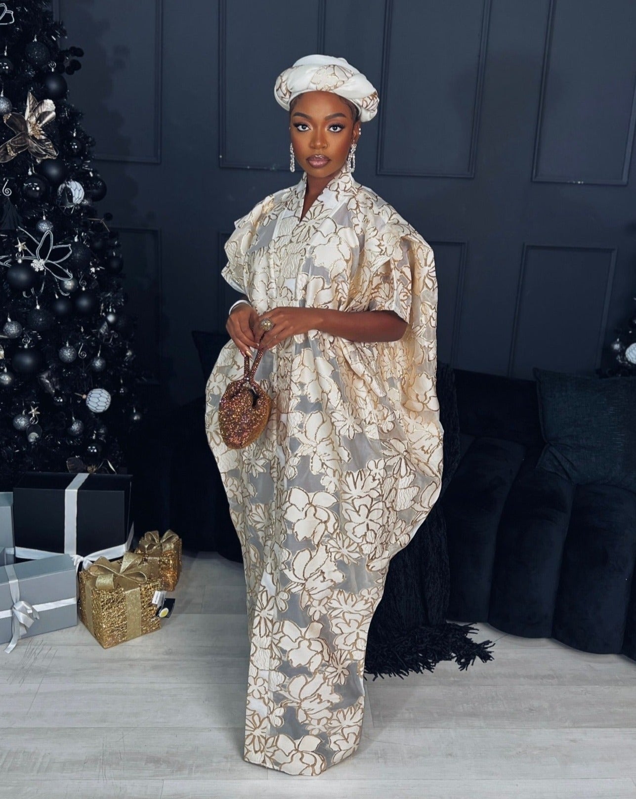 Statement kaftan dress paired with matching turban head cap. See through. Inner slip dress NOT included.